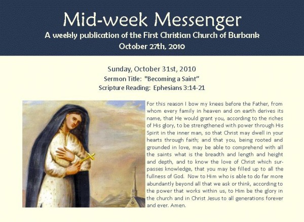 Mid-Week Messenger (October 27, 2010) 페이지 정보 작성자 새길 쪽지보내기 메일보내기 홈페이지 자기소개 아이디로 검색 전체게시물 쪽지보내기 메일보내기 홈페이지 자기소개 아이디로 검색 전체게시물 조회 9,978회 작성일 10-10-27 16:48 댓글 0 본문 이전글 Mid-Week Messenger (November 3, 2010) 다음글Mid-Week Messenger (October 20, 2010) 목록 댓글목록 등록된 댓글이 없습니다.