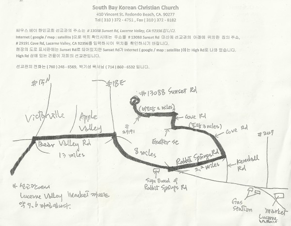 장소:  13088 Sunset Rd., Lucerne Valley, CA 92356
